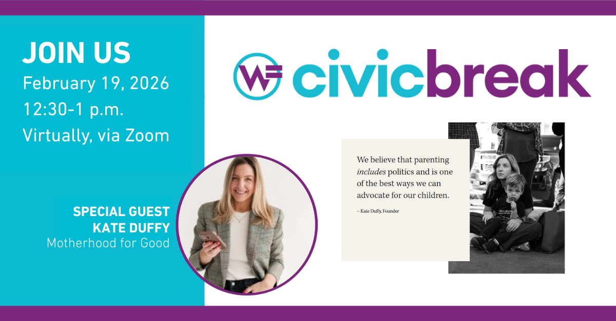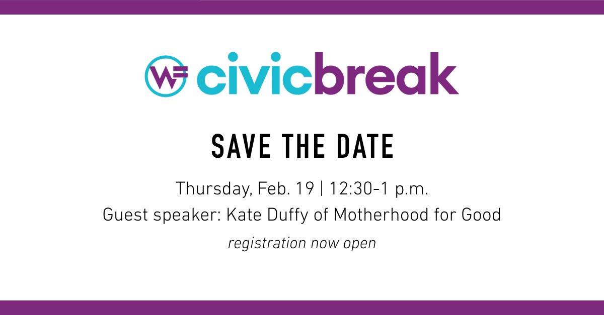 Our next Civic Break will take place Thursday, Feb. 19, from 12:30–1 p.m., featuring guest speaker Kate Duffy of Motherhood for Good. These sessions are built to fit into a busy day and offer clear context and key takeaways for anyone who wants to stay informed and engaged. More details to come.