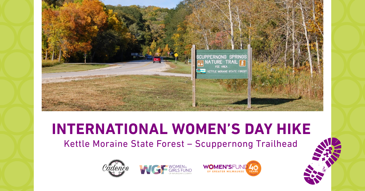 Step outside and celebrate International Women’s Day with us at Scuppernong Trailhead. In partnership with Cadence Cycling MKE and Women & Girls Fund of Waukesha County, this guided hike blends fresh air, learning, and reflection. We’ll explore prairie and forest trails, pause to honor women in history, and connect with one another along the way.