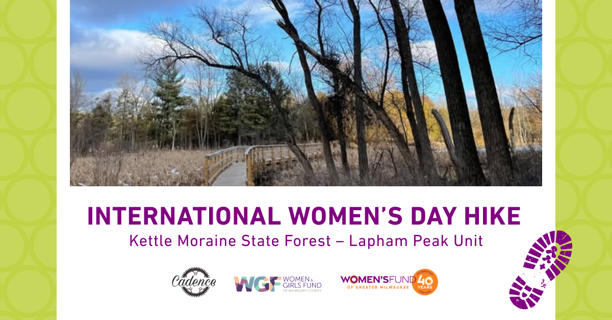 Step outside and celebrate International Women’s Day with us at Lapham Peak. In partnership with Cadence and Women & Girls Fund of Waukesha County, this guided hike blends fresh air, learning, and reflection. We’ll explore prairie and forest trails, pause to honor women in history, and connect with one another along the way. Six miles total, with a halfway option available.